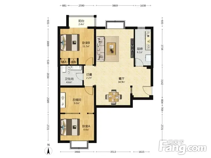 户型齐全,主打明厨,独立衣帽间,双卧朝南,主卧朝南二居