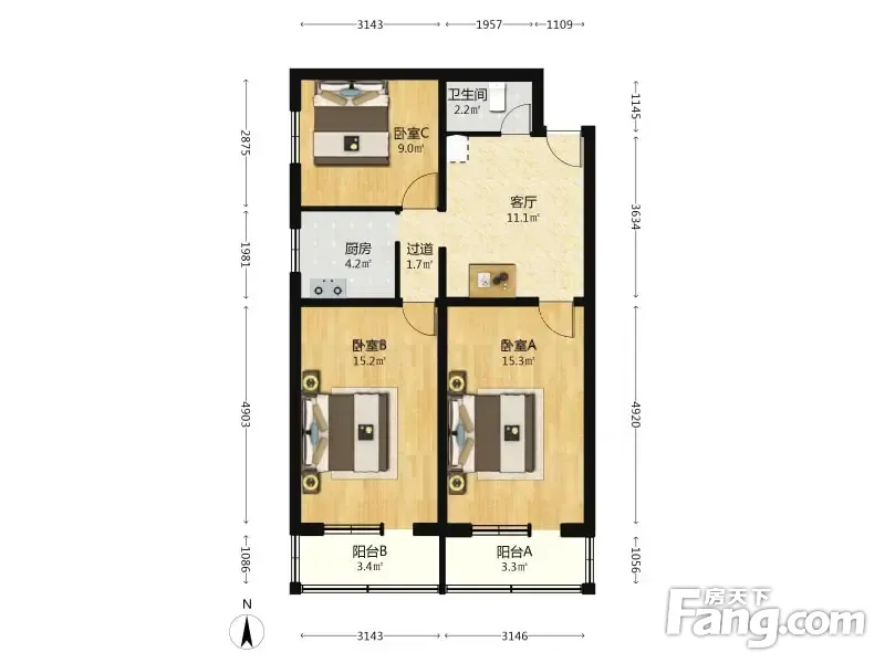 (客户0)永乐东区 3室1厅 87.24平