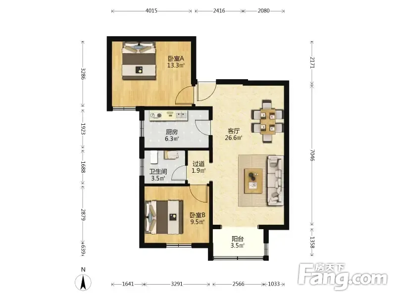 户型齐全,主打户型方正,明厨,主卧朝南二居
