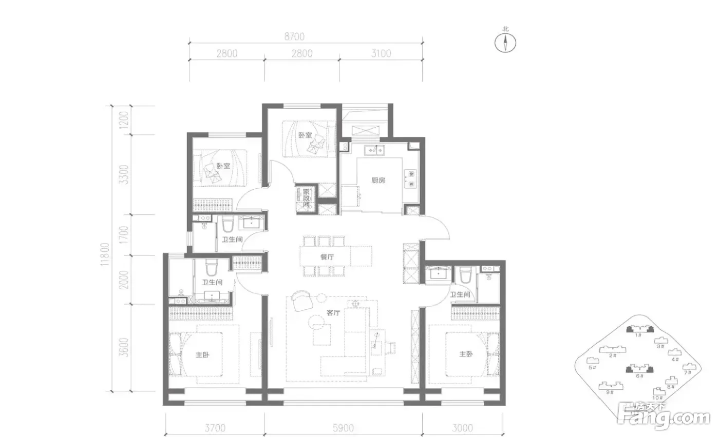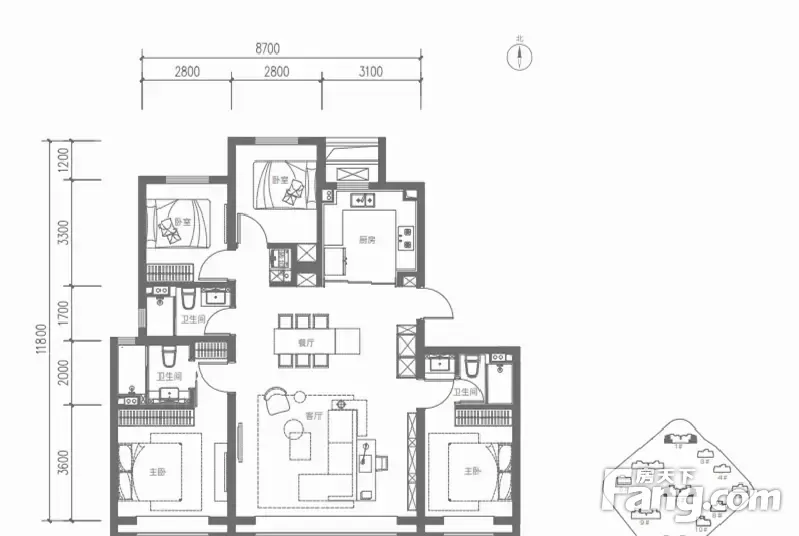 户型齐全,主打南北通透,客厅朝南三居