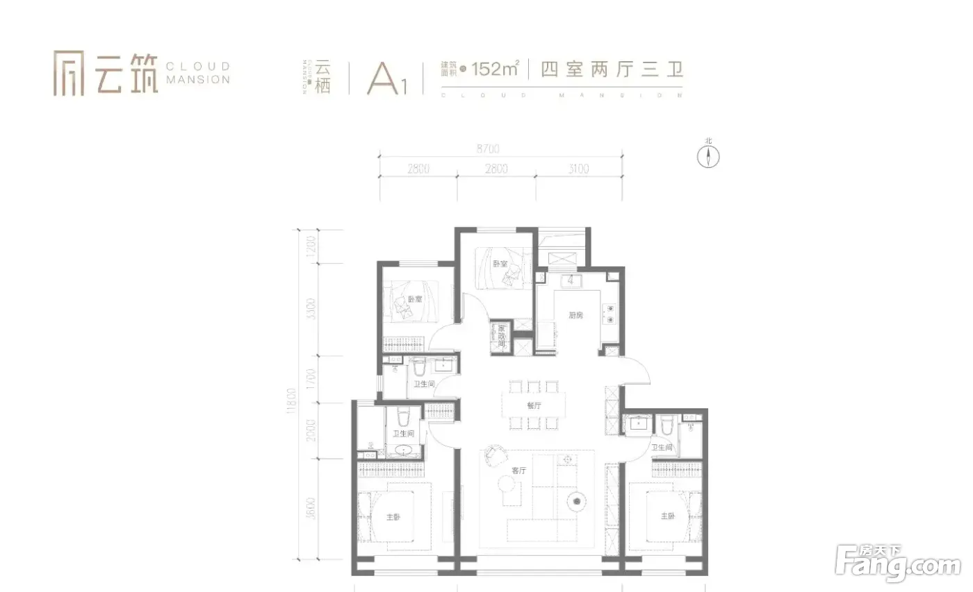 房屋拥有相对宽松的尺寸,布局通透,动静分离,设计豪华