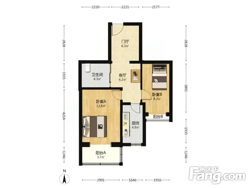 户型齐全,主打户型方正,双阳台,双卧朝南,主卧朝南二居