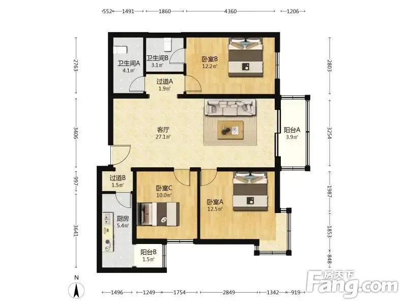 3室1厅2卫