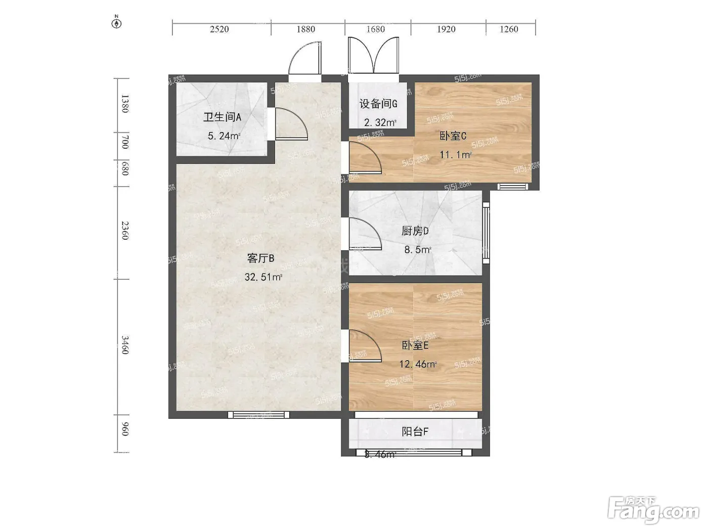 户型介绍:房子客厅朝南,主卧朝南,次卧朝北。