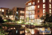 滨河花园占据阳光上东的地段,紧邻坝河,容积率仅为1.7。滨河花园,4-6层低层纯板楼,容积率仅为1.7。规划设计以大尺度、大视野、低密度为整体空间特点,以幽静、现代、理性、为园区主基调。滨河花园的垂直主道、向心布道规划,是它形成豪宅区私密感的一种重要方式。这种归属感的空间模式,能够形成从公共到私密的连续性空间过渡,从而借助于空间上的深度,形成极强的归属感及私密感。因为这是只属于领馆内部住户的私家区域,正是在这种空间防卫心理作用下,滨河花园世界领馆形成了应有的尊贵感和专属感。丰富的建筑天际线,与