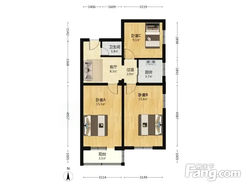 • 3室1厅1卫