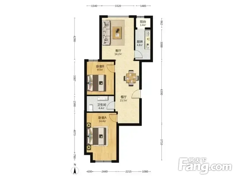 户型齐全,主打客厅朝南,双阳台,主卧朝南二居
