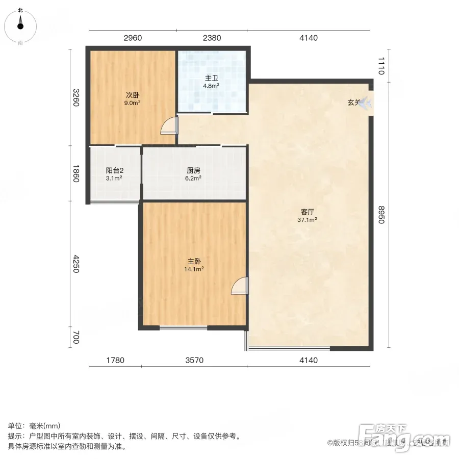 户型齐全,主打明厨,主卧朝南,独立衣帽间,客厅朝南二居
