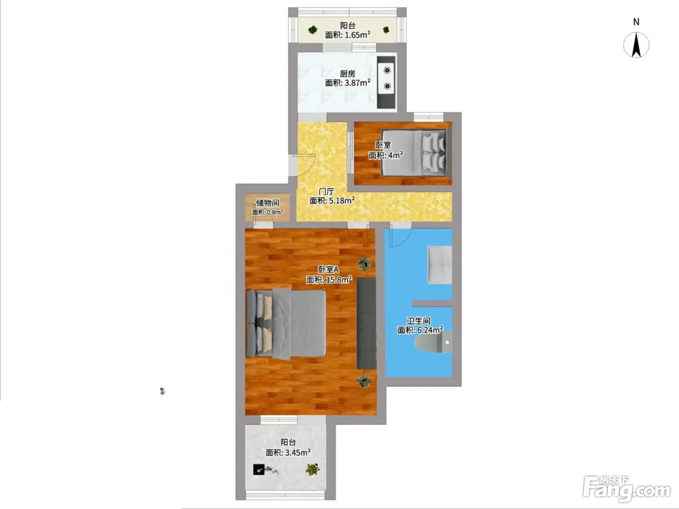 户型齐全,主打双卧朝南,主卧朝南二居