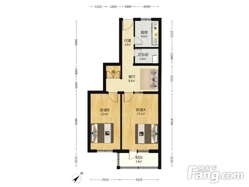 石榴园北里小区 2室1厅 68.55平