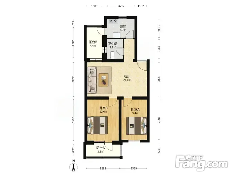 兴华园 2室1厅 78.63平 双卧朝南采光充足明厅带阳台