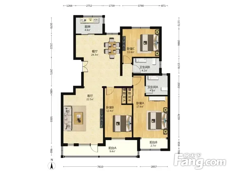 房屋拥有相对宽松的尺寸,布局通透,动静分离,设计豪华