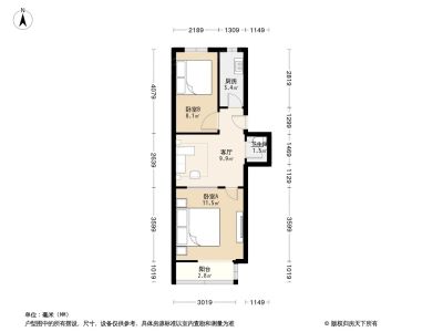 户型介绍:此房户型为2室1厅1卫,建筑面积为60.9平米,朝向为南北。进门是厅和北向厨房,往里走是南北各一间卧室,主卧室朝南,带南向阳台,次卧室朝北,南北两侧窗前无遮挡,采光充足,且通风良好,卫生间在两卧之间。