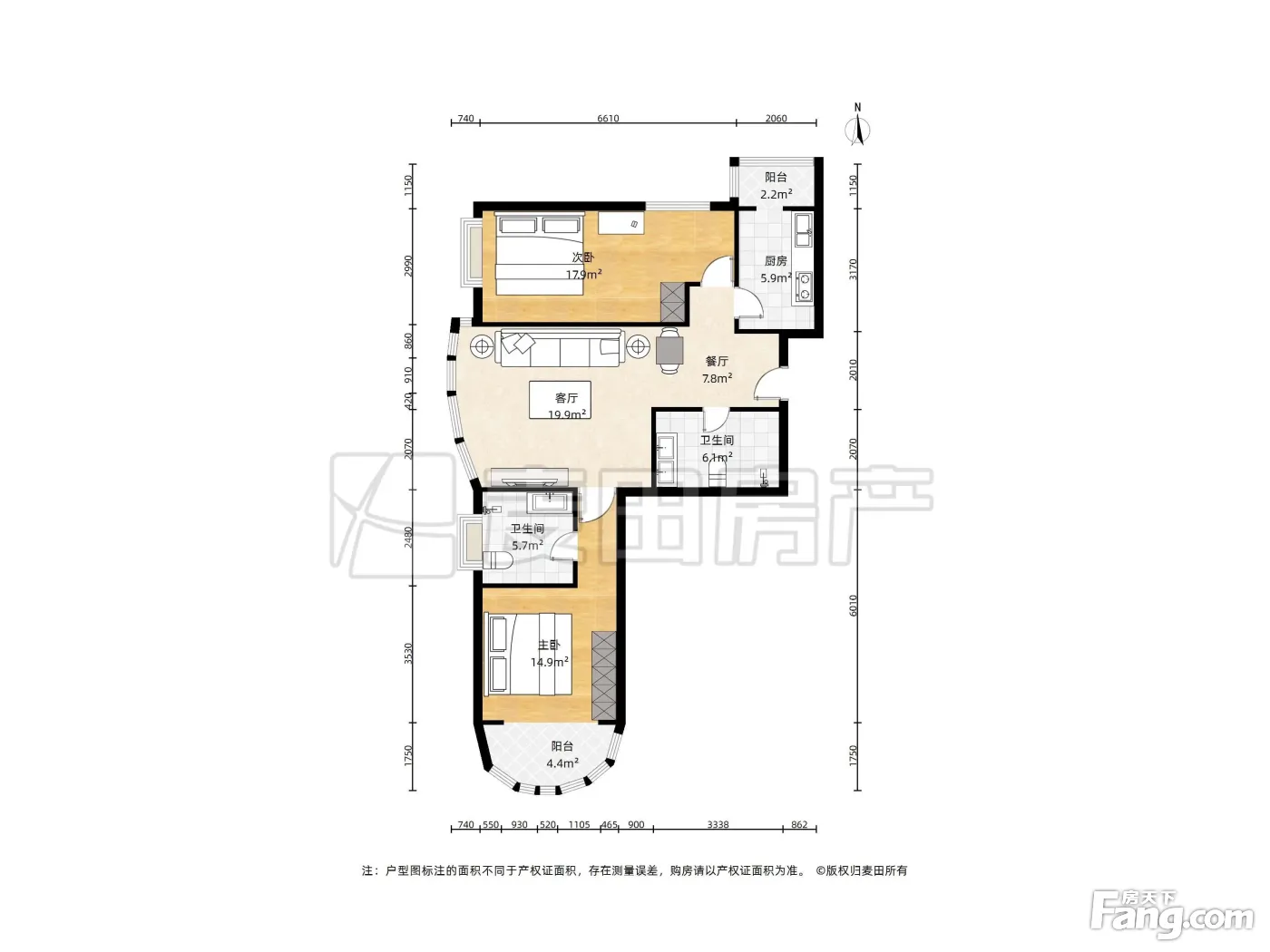 户型方正,客厅有40平米 两个卫生间都是明的 采光视野好