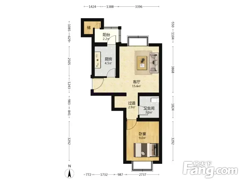 吕营嘉园A区1室1厅50.25平南北通透 高层 看房预约
