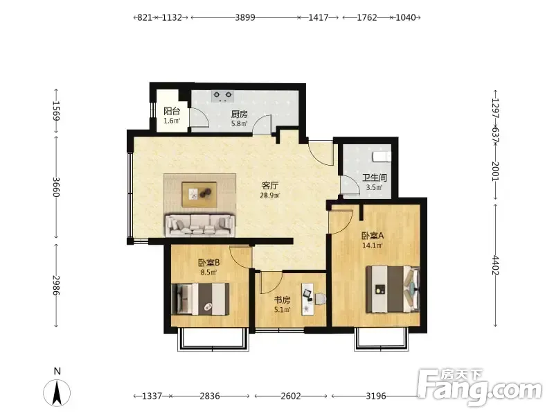 富力华庭苑西区 3室1厅 89.11平