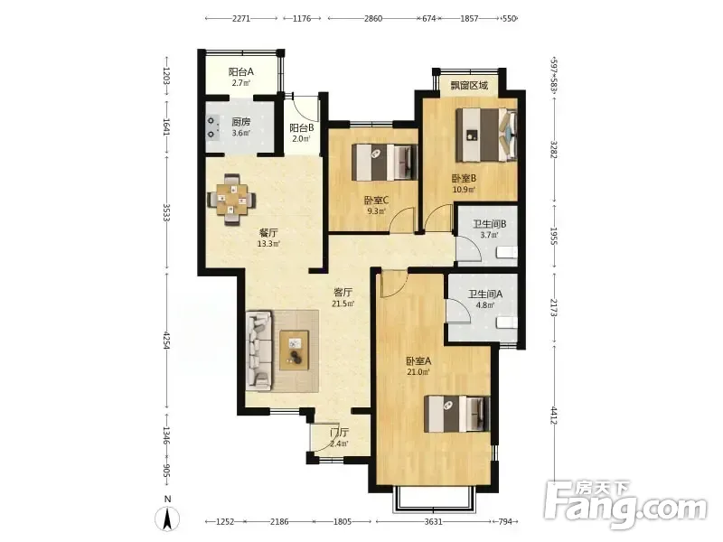 户型齐全,主打户型方正,明卫三居