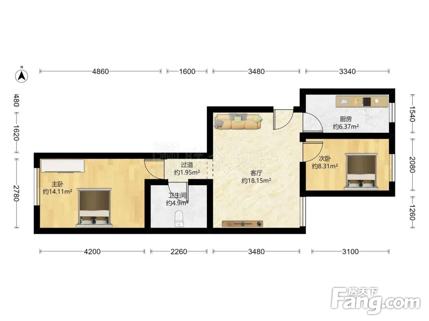 户型齐全,主打明厨,客厅朝南二居