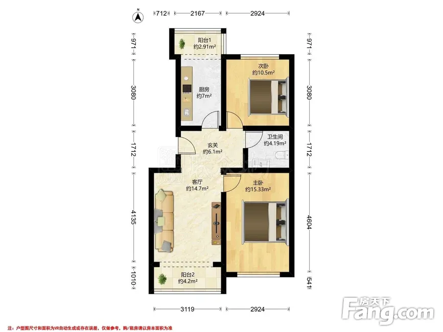 户型齐全,主打双阳台,主卧朝南二居