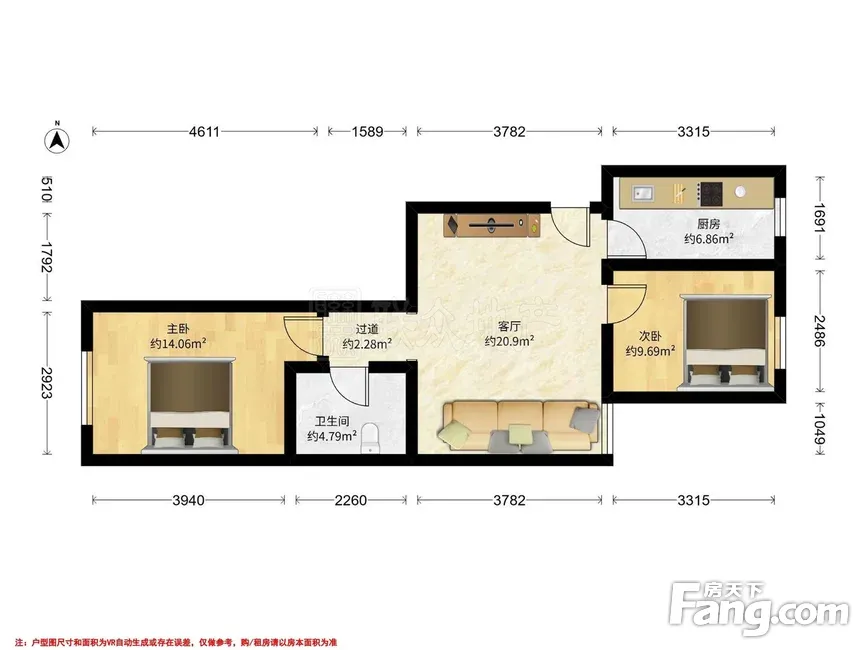 户型齐全,主打明厨,客厅朝南二居
