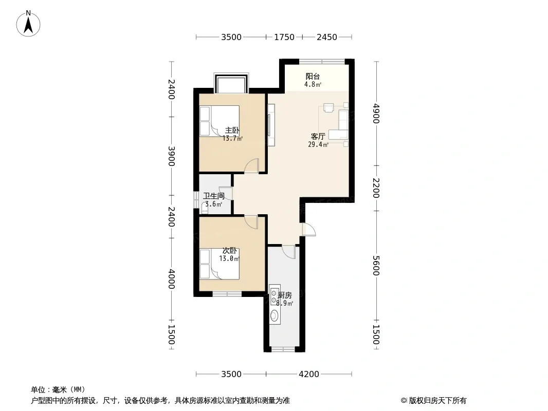 户型齐全,主打南北通透,客厅朝南二居