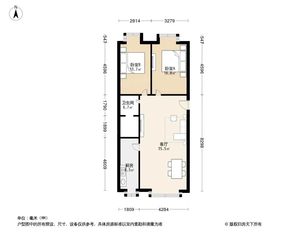 户型齐全,主打户型方正,明厨,客厅朝南,双阳台二居