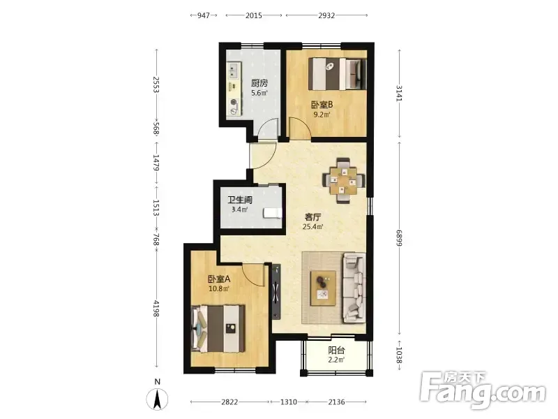 榆垡新城嘉园A区 2室2厅 81.09平