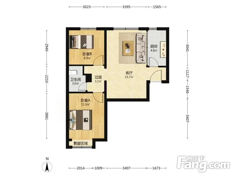 户型齐全,主打明厨,客厅朝南,双卧朝南,主卧朝南二居