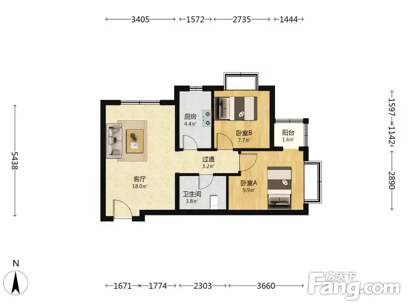 明发雅苑 2室1厅 71.85平