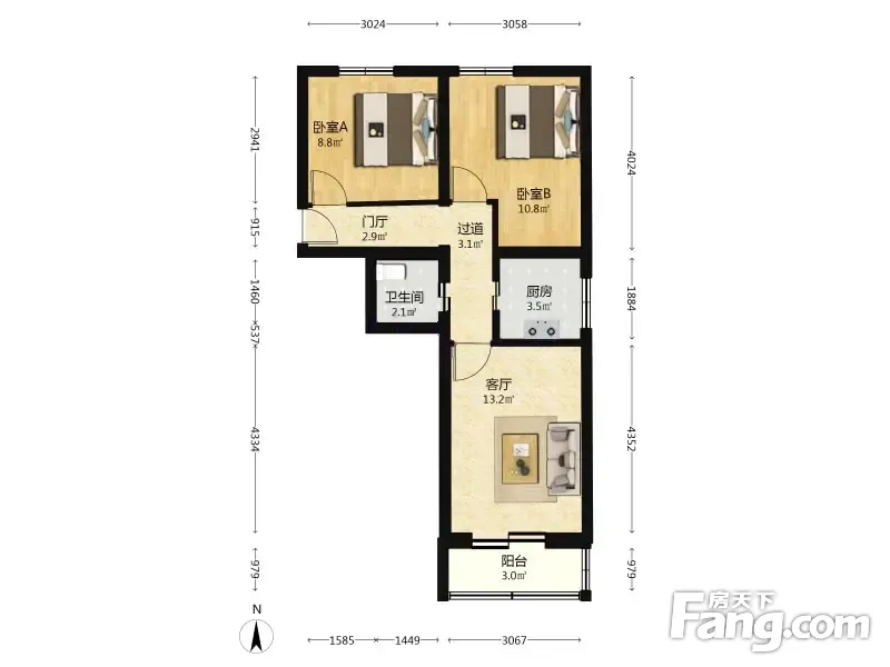 天堂河北区 2室1厅 64.57平