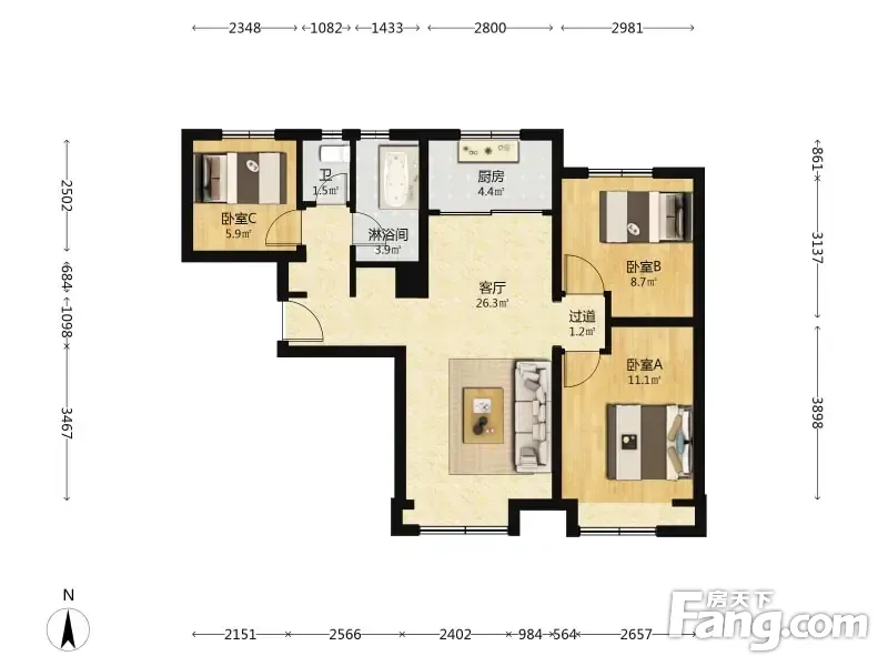 住总万科橙 3室1厅 93.78平
