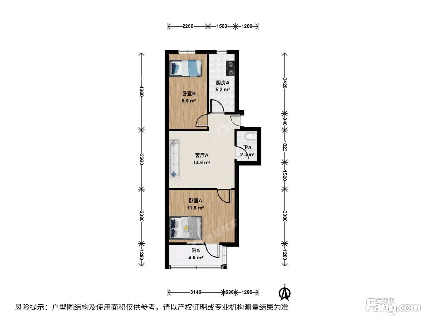 户型齐全,主打户型方正,明厨,客厅朝南,主卧朝南二居