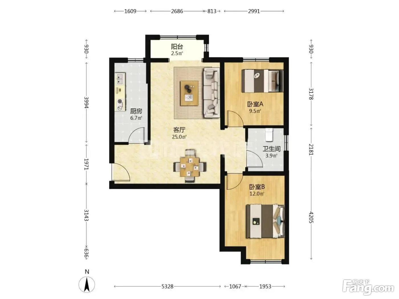 户型齐全,主打客厅朝南,双阳台,主卧朝南二居