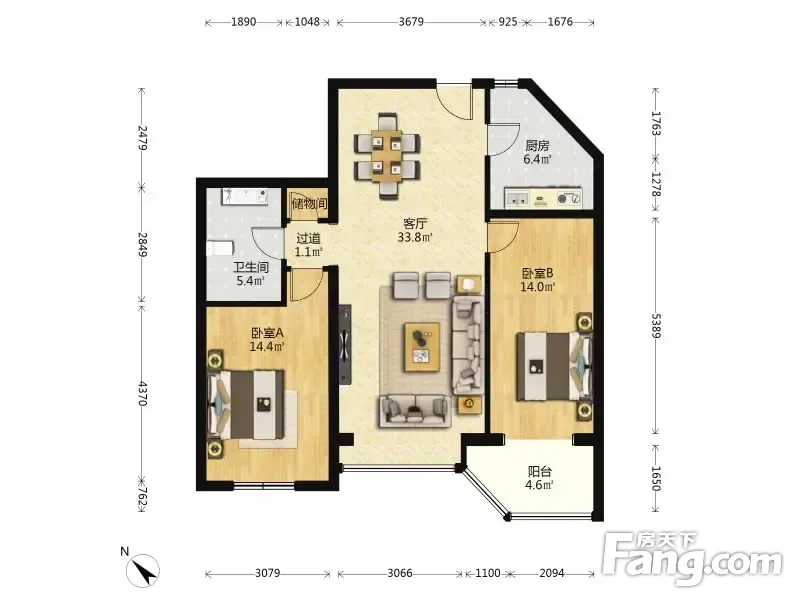 户型齐全,主打明厨,客厅朝南二居