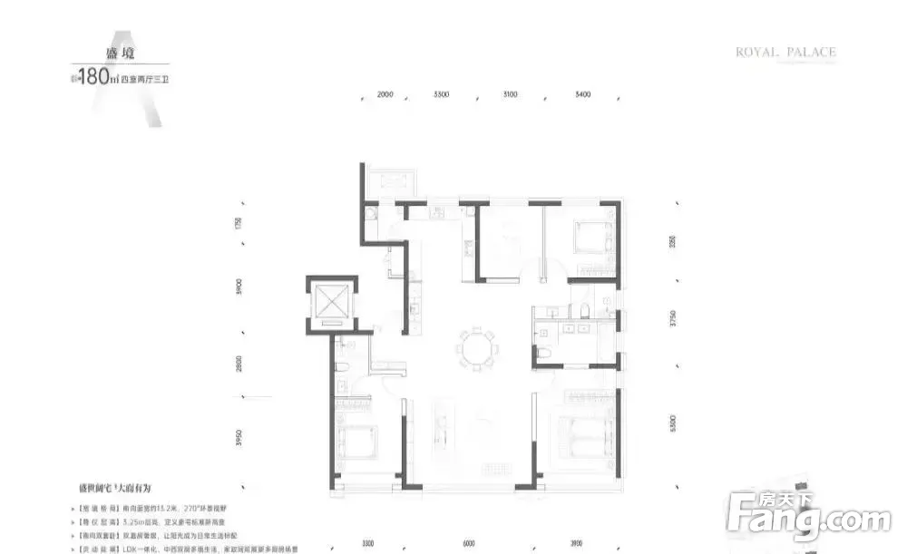 房屋拥有相对宽松的尺寸,布局通透,动静分离,设计豪华。