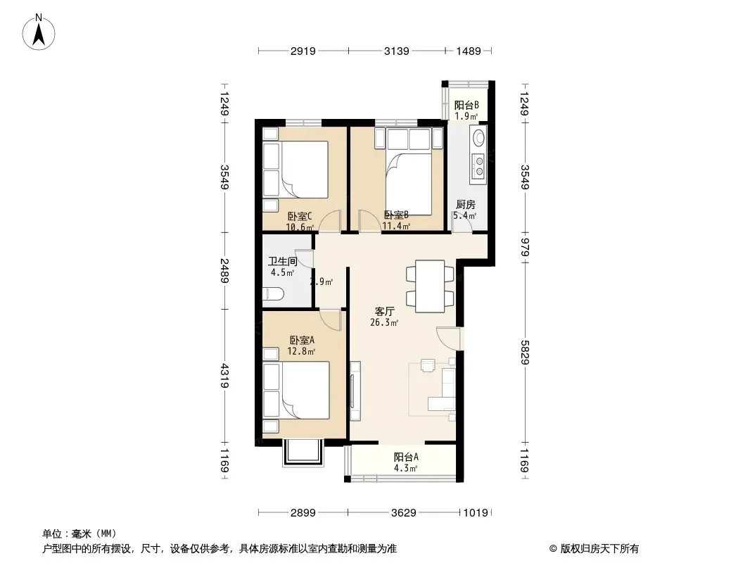 3室2厅1卫