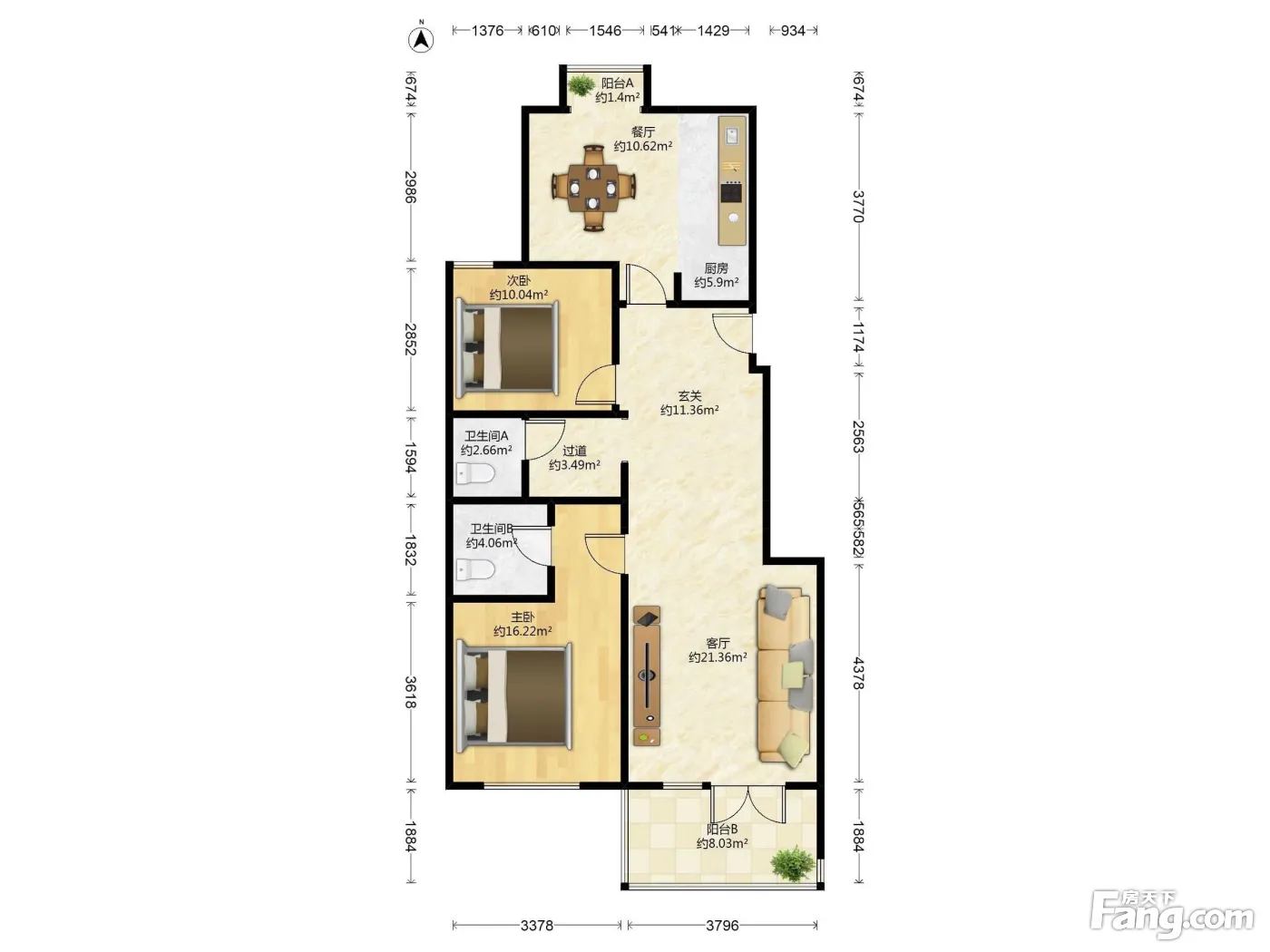 户型齐全,主打南北通透,干湿分离三居