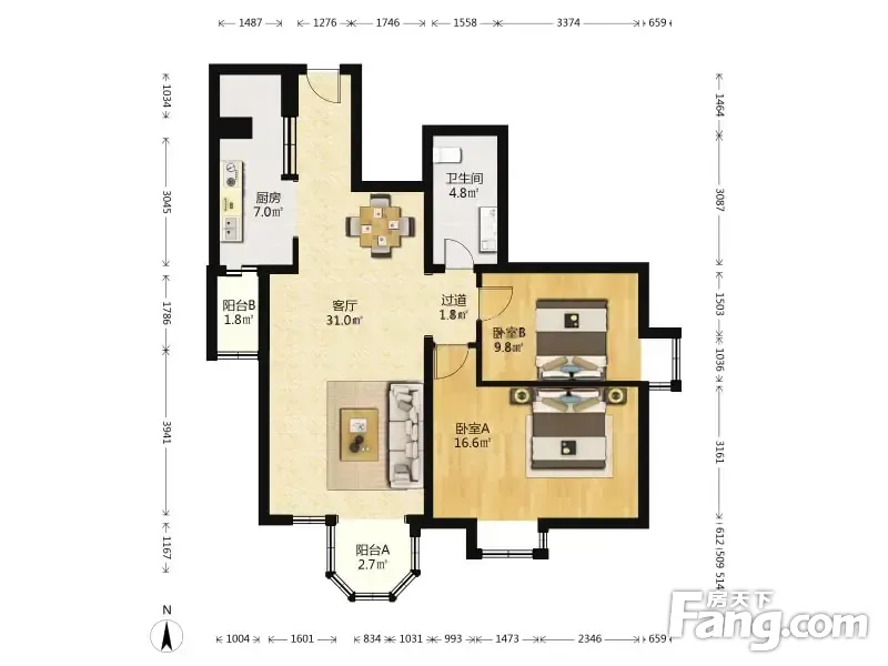 户型齐全,主打客厅朝南二居