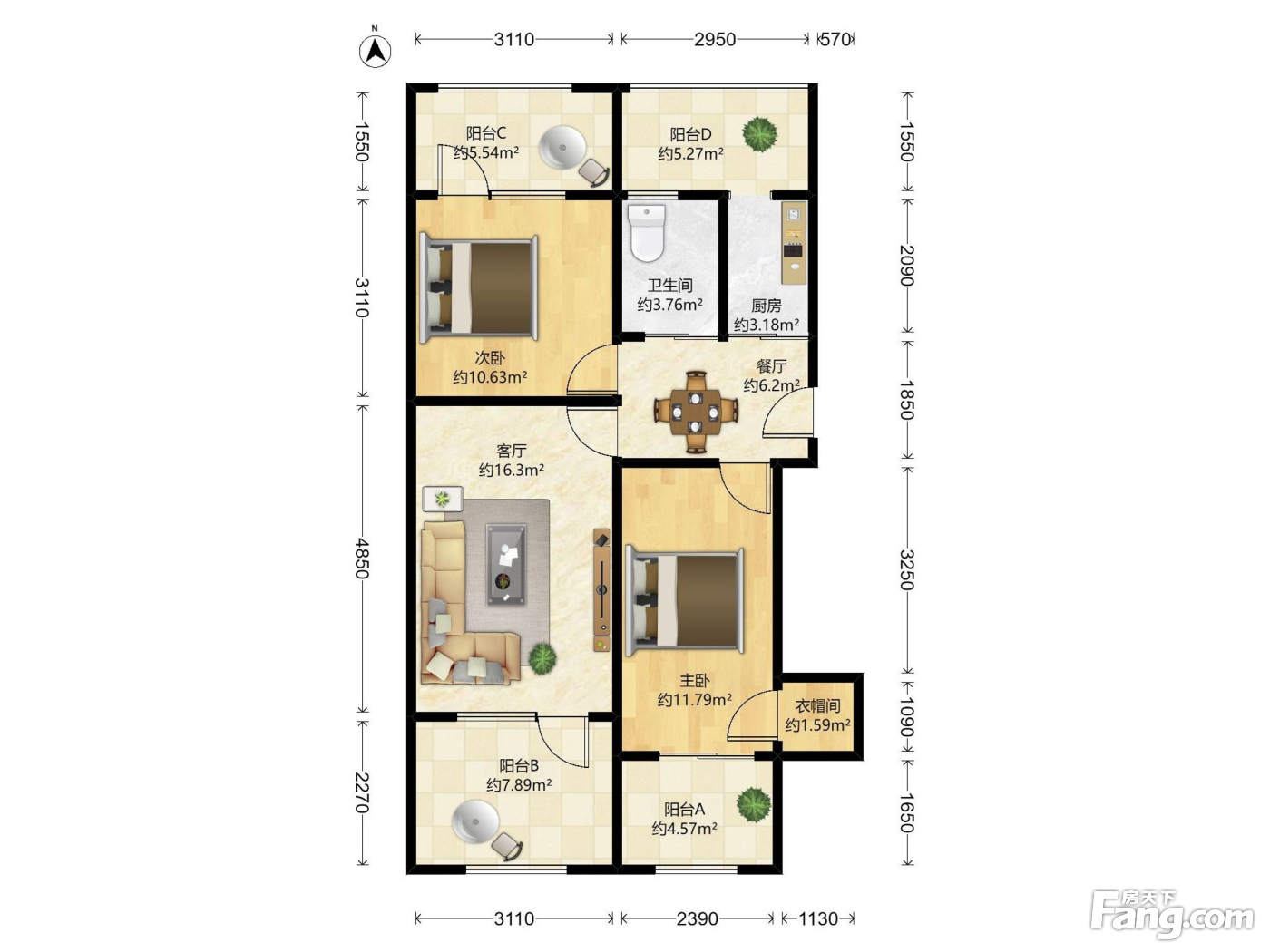 户型齐全,主打户型方正,双阳台,主卧朝南二居