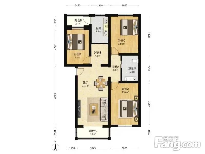 3室2厅1卫