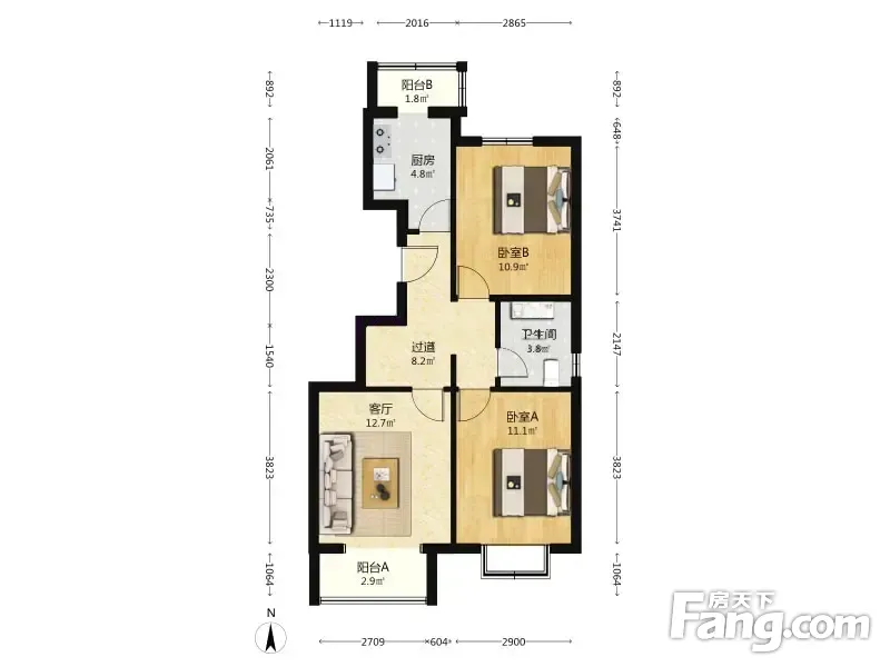 户型齐全,主打户型方正,明卫,双阳台二居