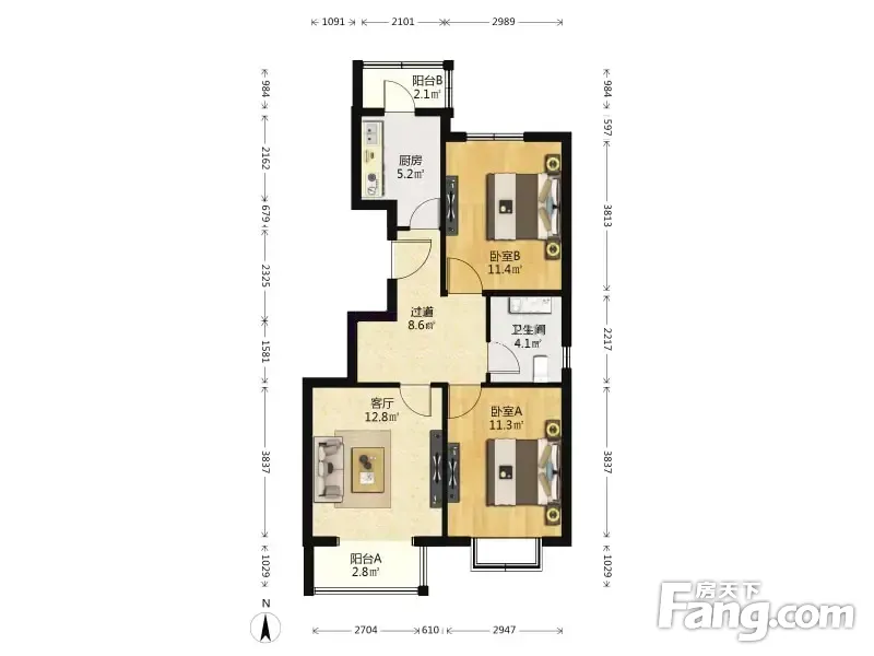康泰园 2室1厅 81.28平