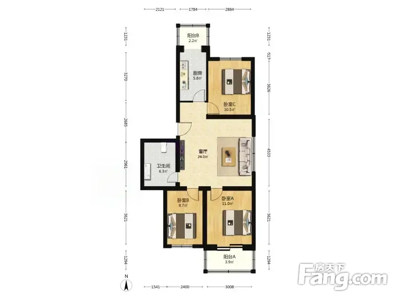 康盛园 3室1厅 99.46平