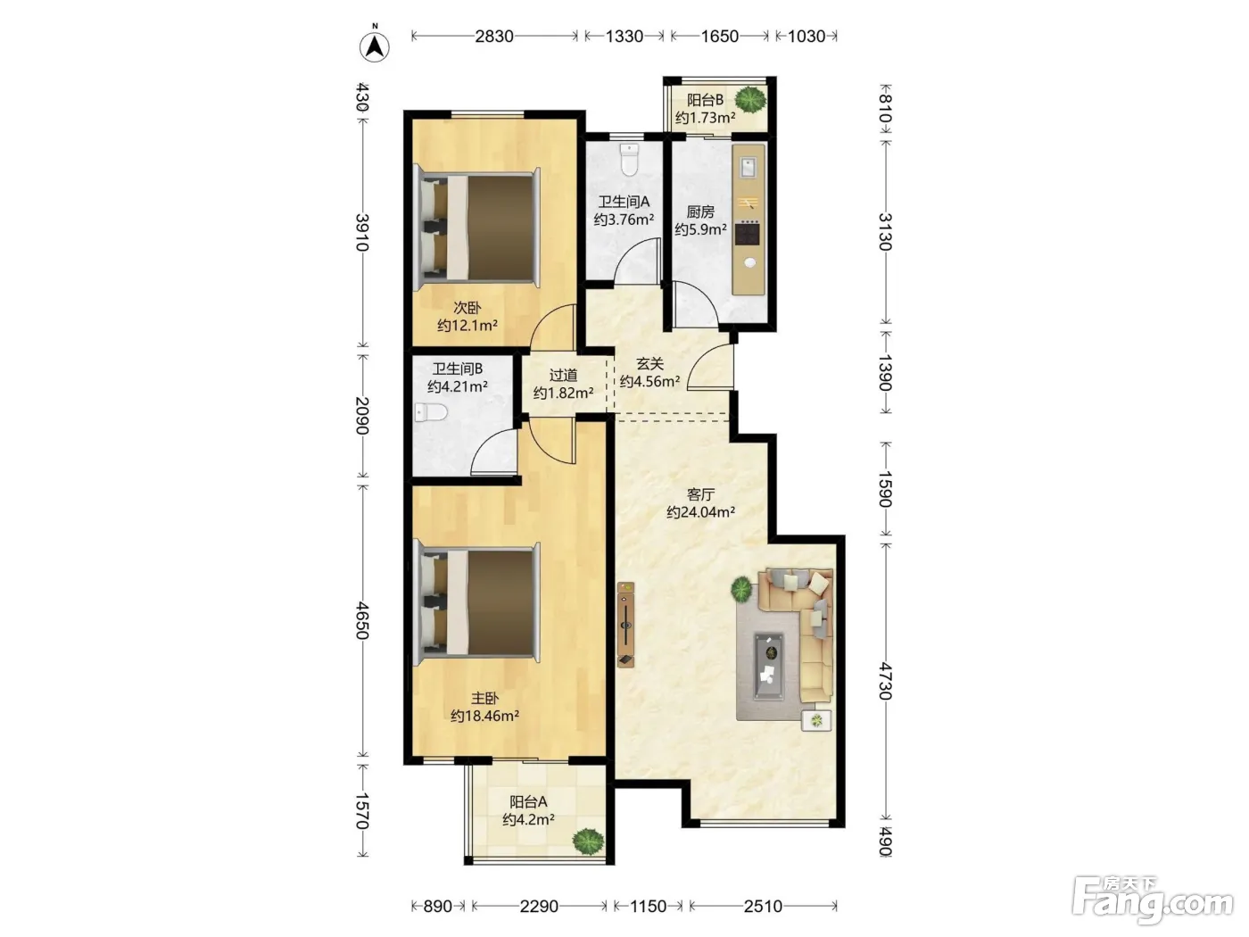 户型齐全,主打户型方正,明厨,双阳台,主卧朝南三居