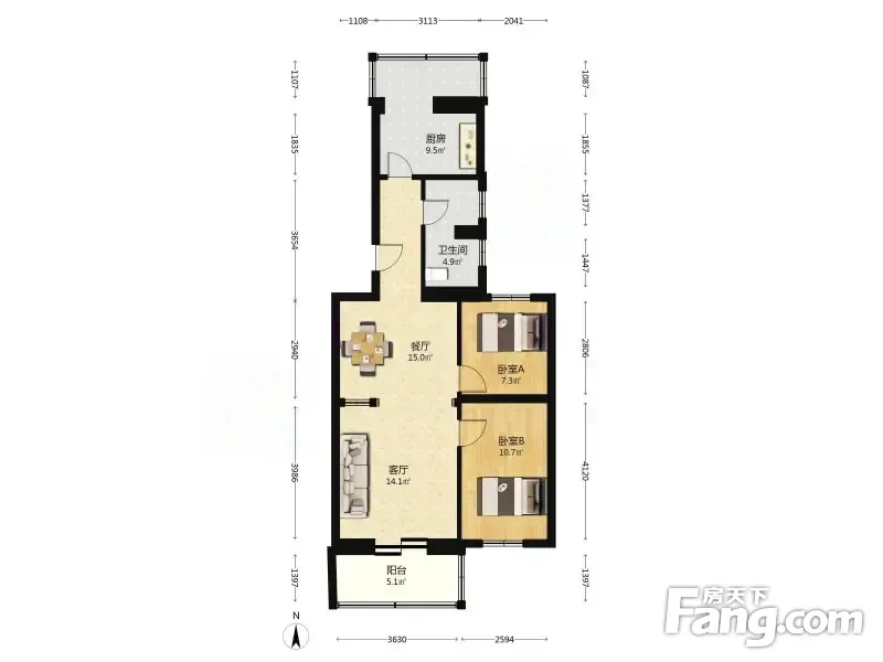 户型齐全,主打户型方正,明卫,客厅朝南,双阳台,主卧朝南二居