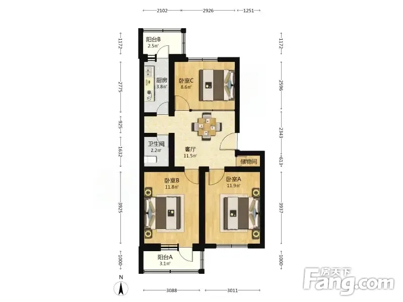 郝庄家园东区 3室1厅 77.95平