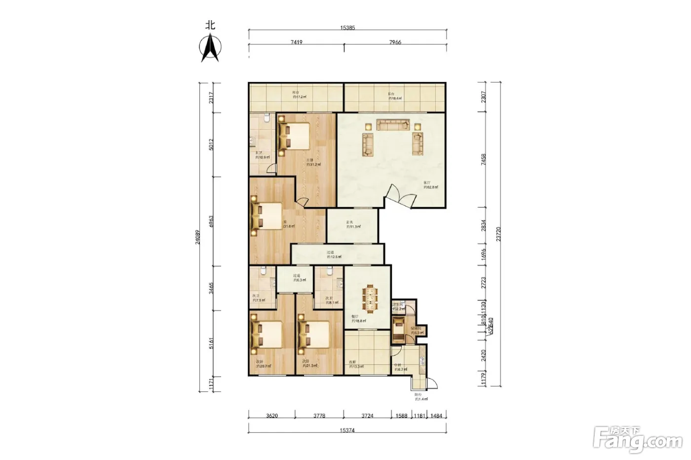 户型描述 本房4室2厅3卫 ①3+1户型,南北通透,餐客分离,主卧和客厅朝北,2个次卧和餐厅朝南,所有卧室都是套房设计 ②承重柱结构,四周承重,户型可调整 景观特点 ①玉渊潭南侧,高层景观好 ②周边绿化面积大,水系丰富 ③空气质量高 装修特点 开发商精装修 ①客厅和玄关为天然大理石石材地面,卧室都是实木地板 ②户型做了部分调整,书房位置更换了天花板 保养状况 开发商原始装修,一手业主房源,保养状况良好,有人定期打扫