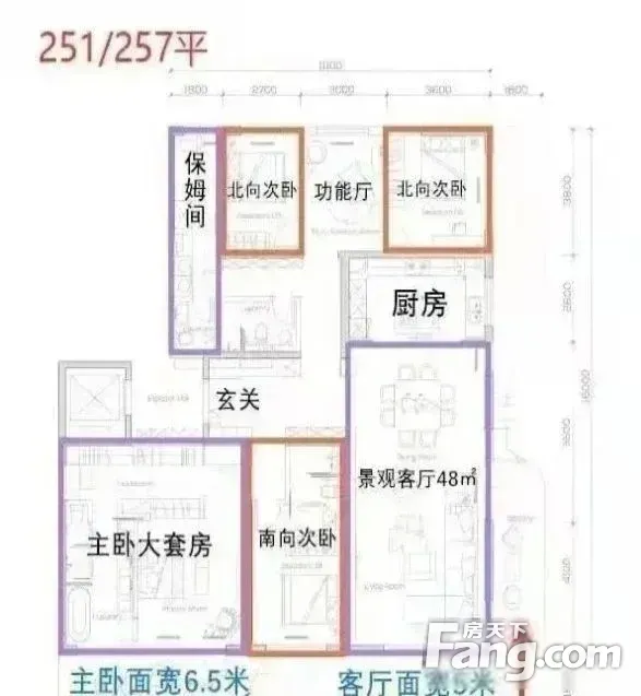 户型齐全,主打南北通透,户型方正,三开间朝南,主卧套间四居