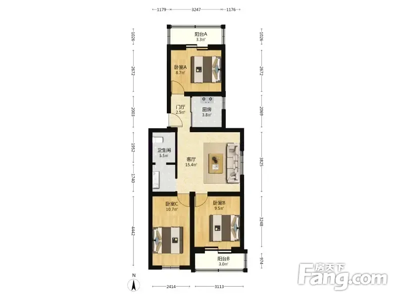 梅源里小区 3室1厅 82.77平