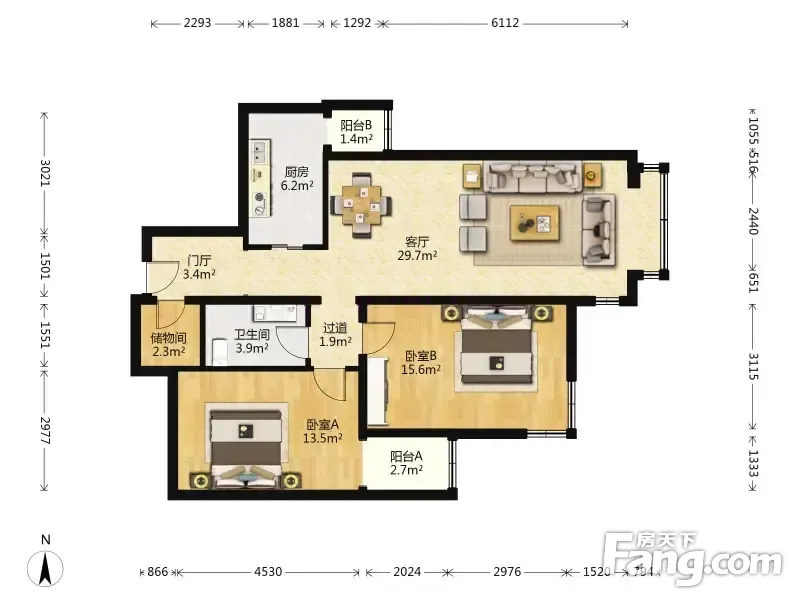 户型齐全,主打客厅朝南二居